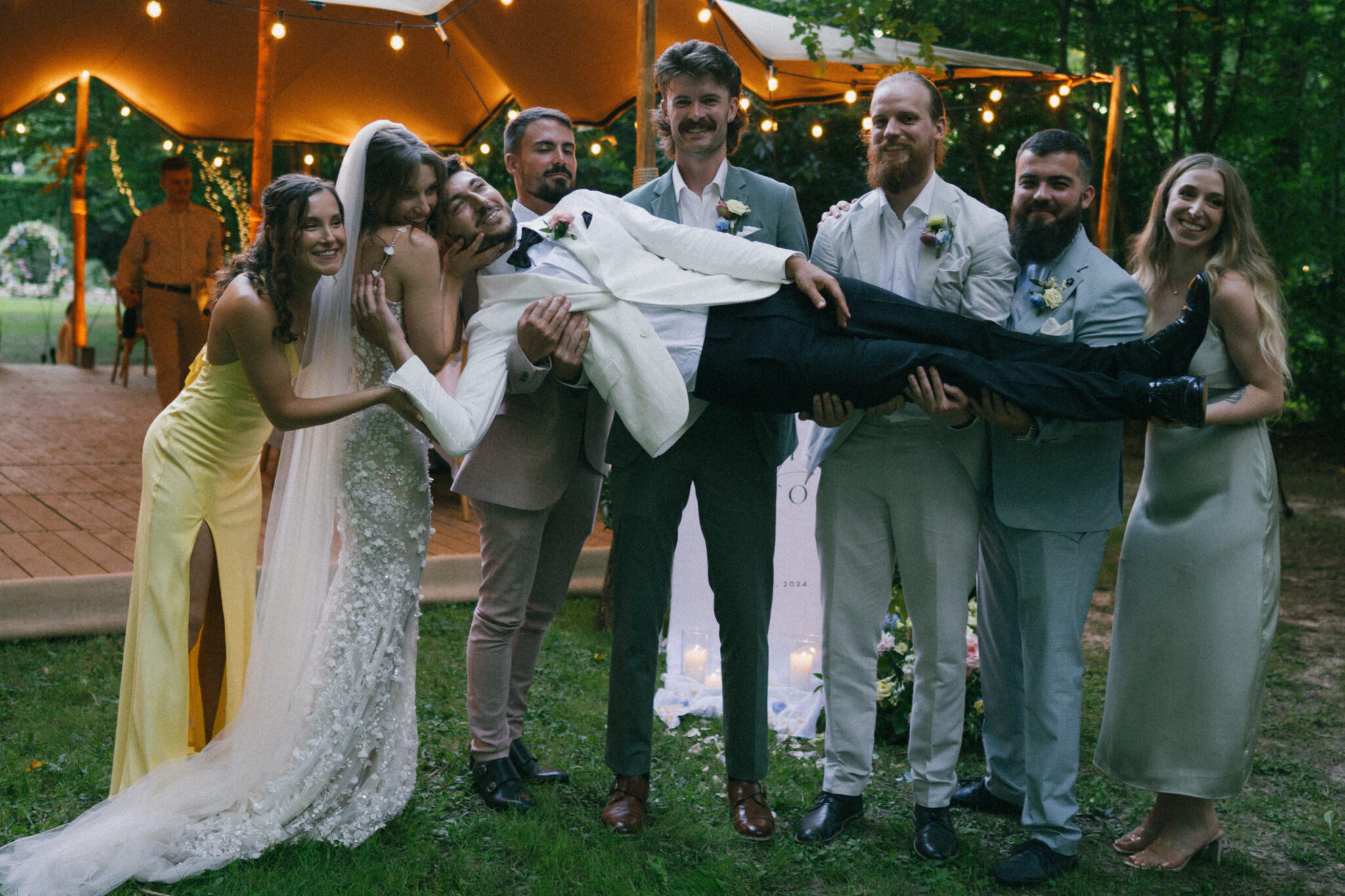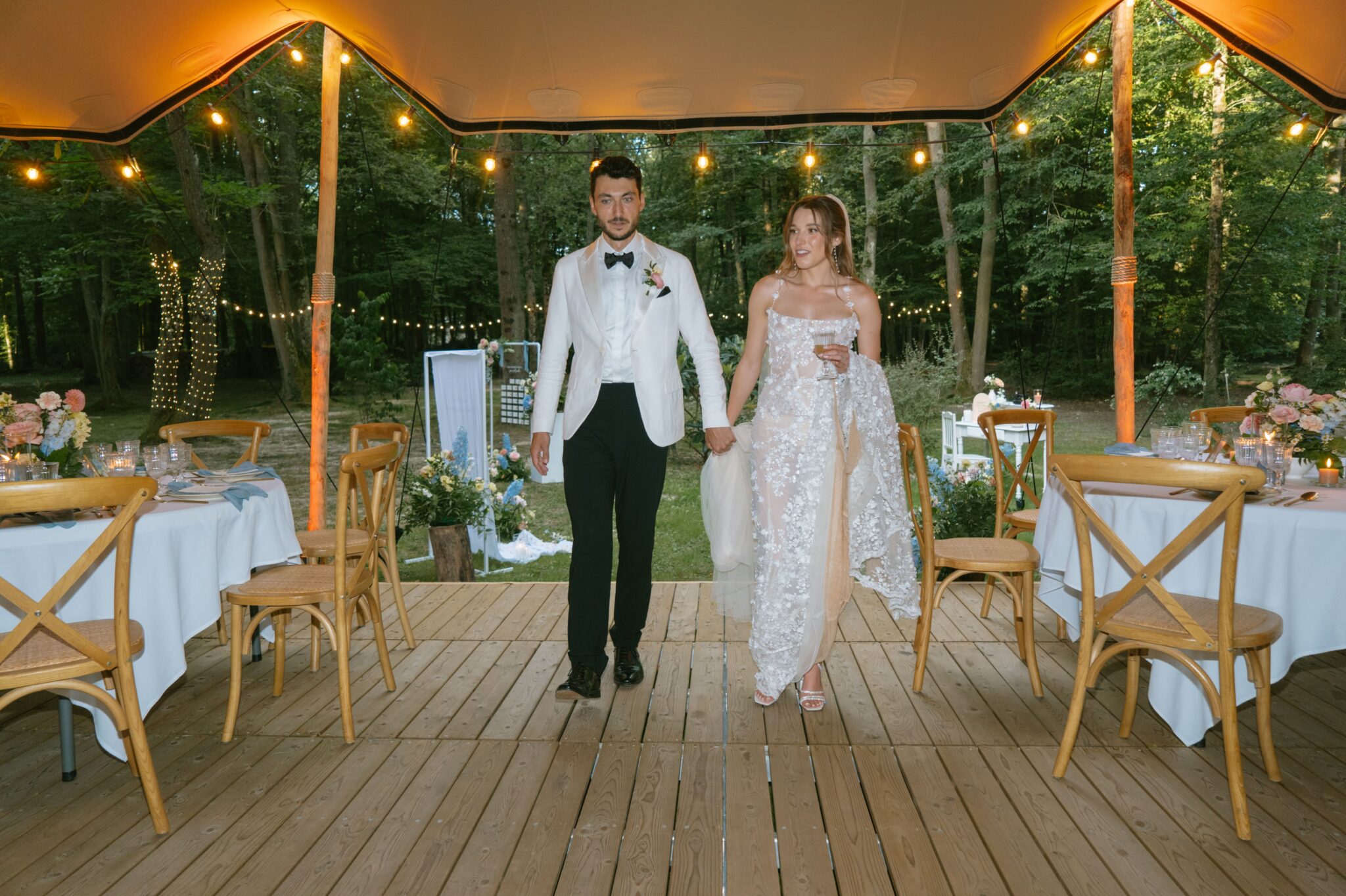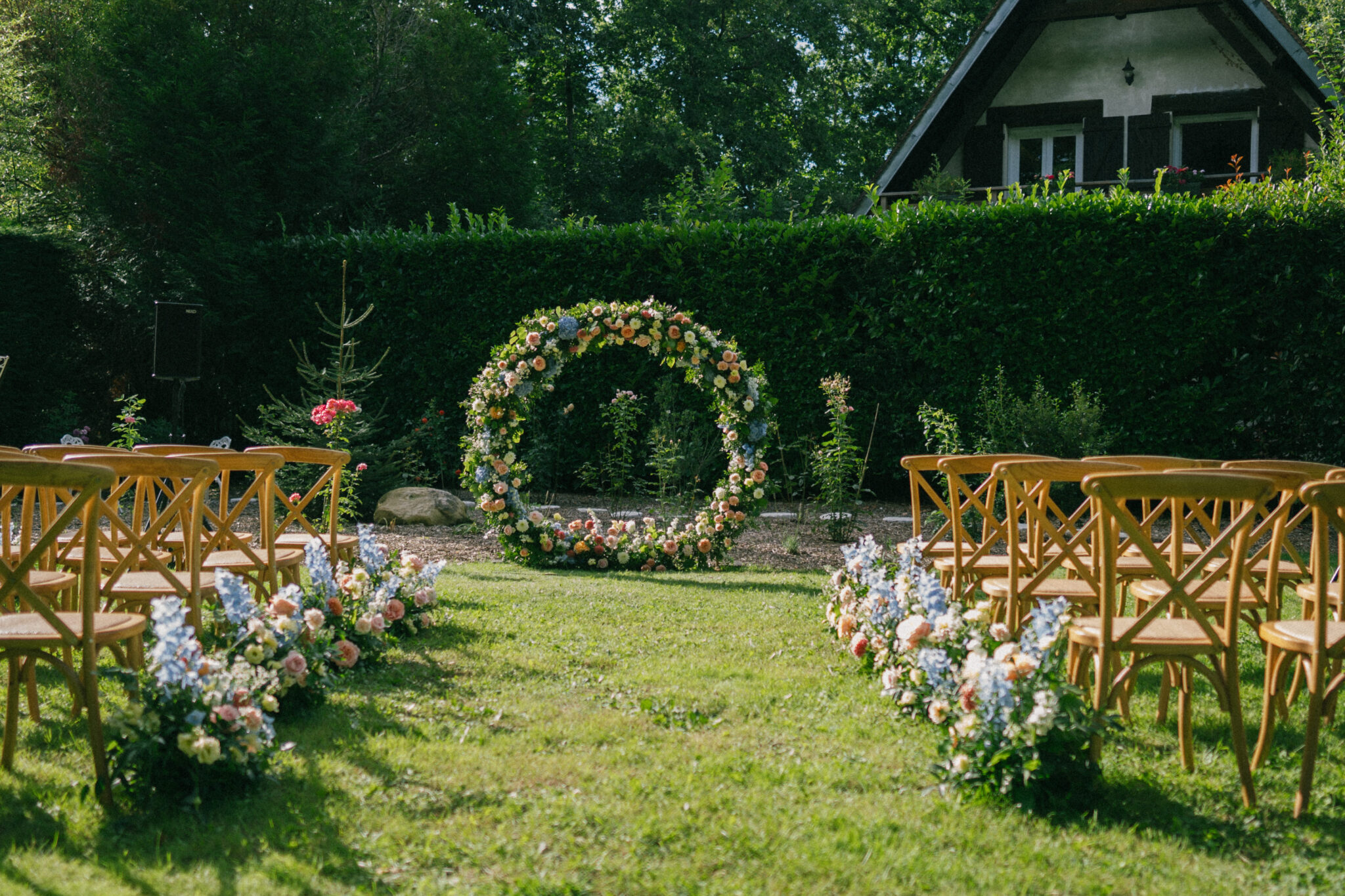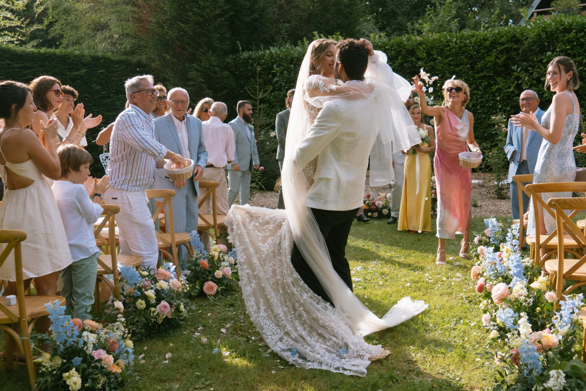 Victor et Katie souhaitaient se marier dans le jardin de la maison familiale : un sacré défi ! Il faut installer une tente pour les invités, une tente pour le traiteur, faire passer l’électricité et créer un espace cérémonie. Le cadre est enchanteur mais on retrousse nos manches pour que la logistique suive. Après plusieurs mois de travail, le résultat dépasse les attentes, les invités et les mariés profitent à fond de la soirée !