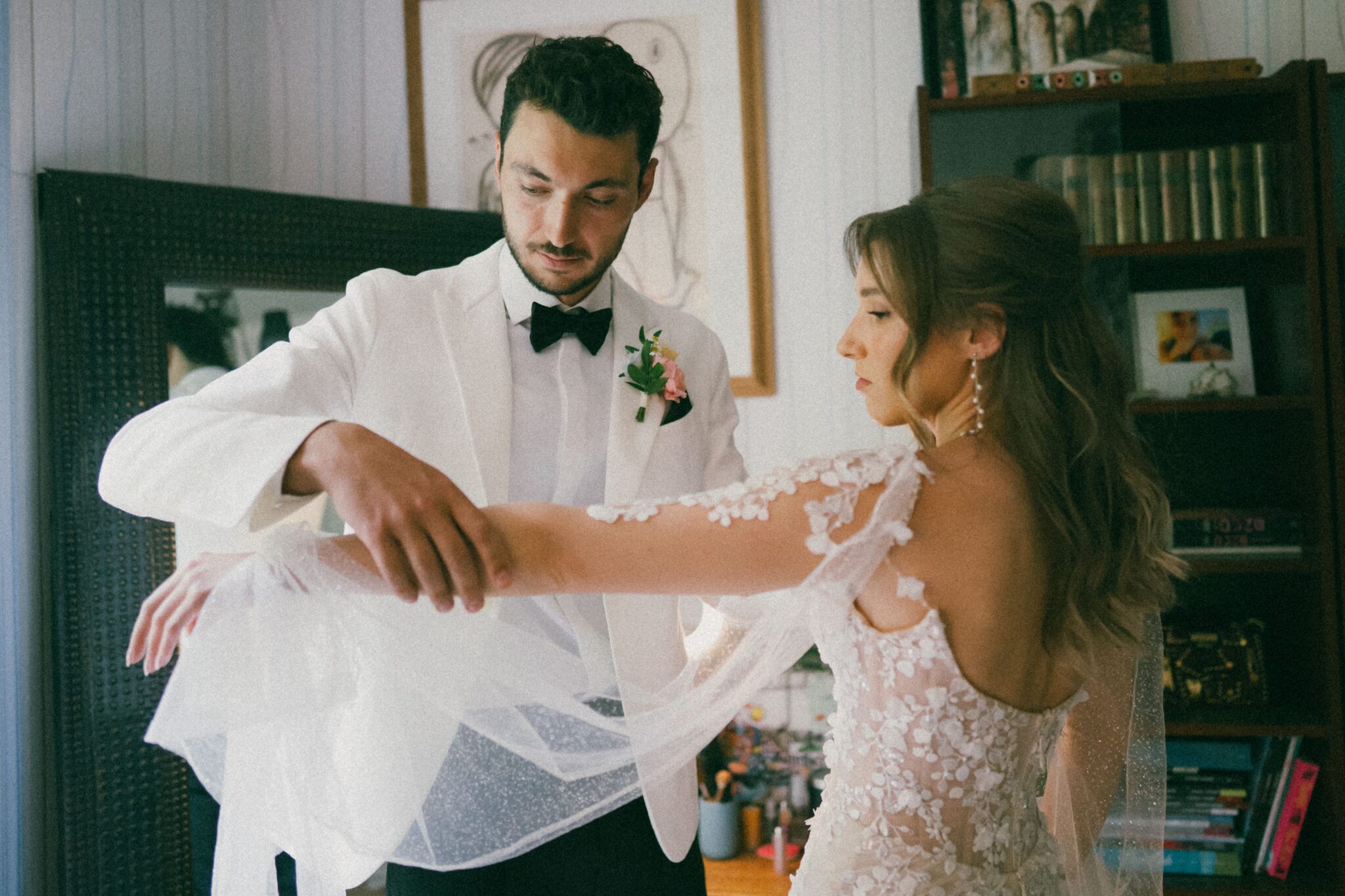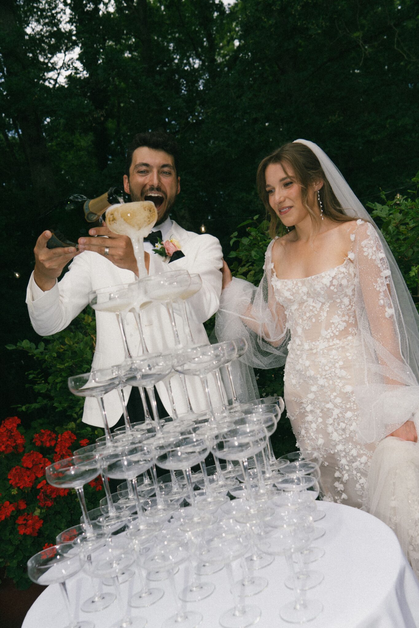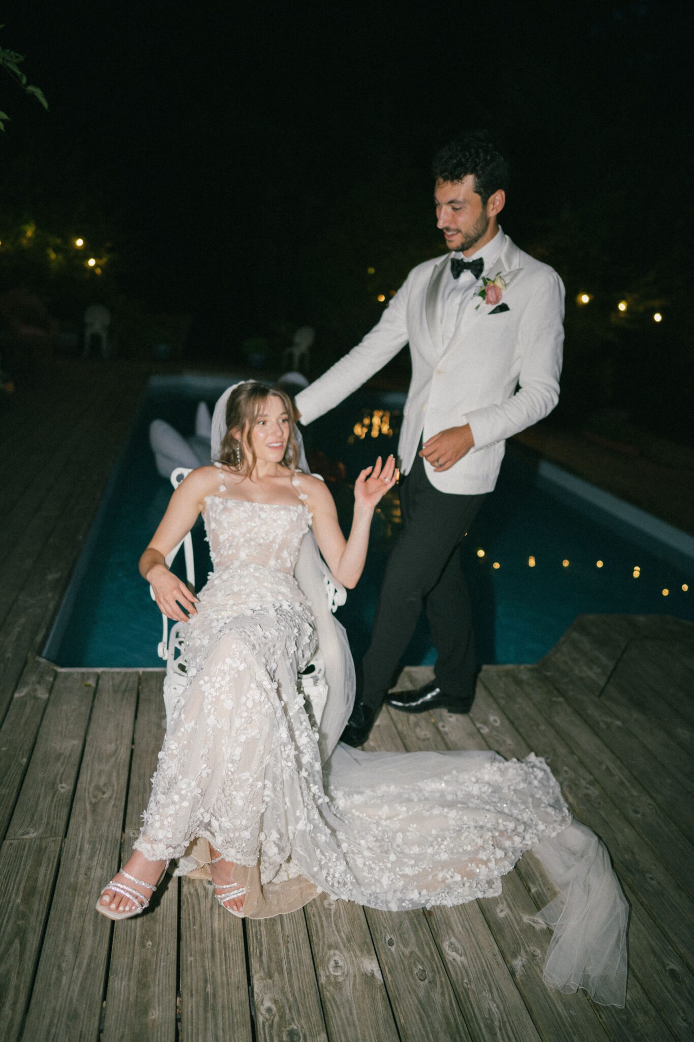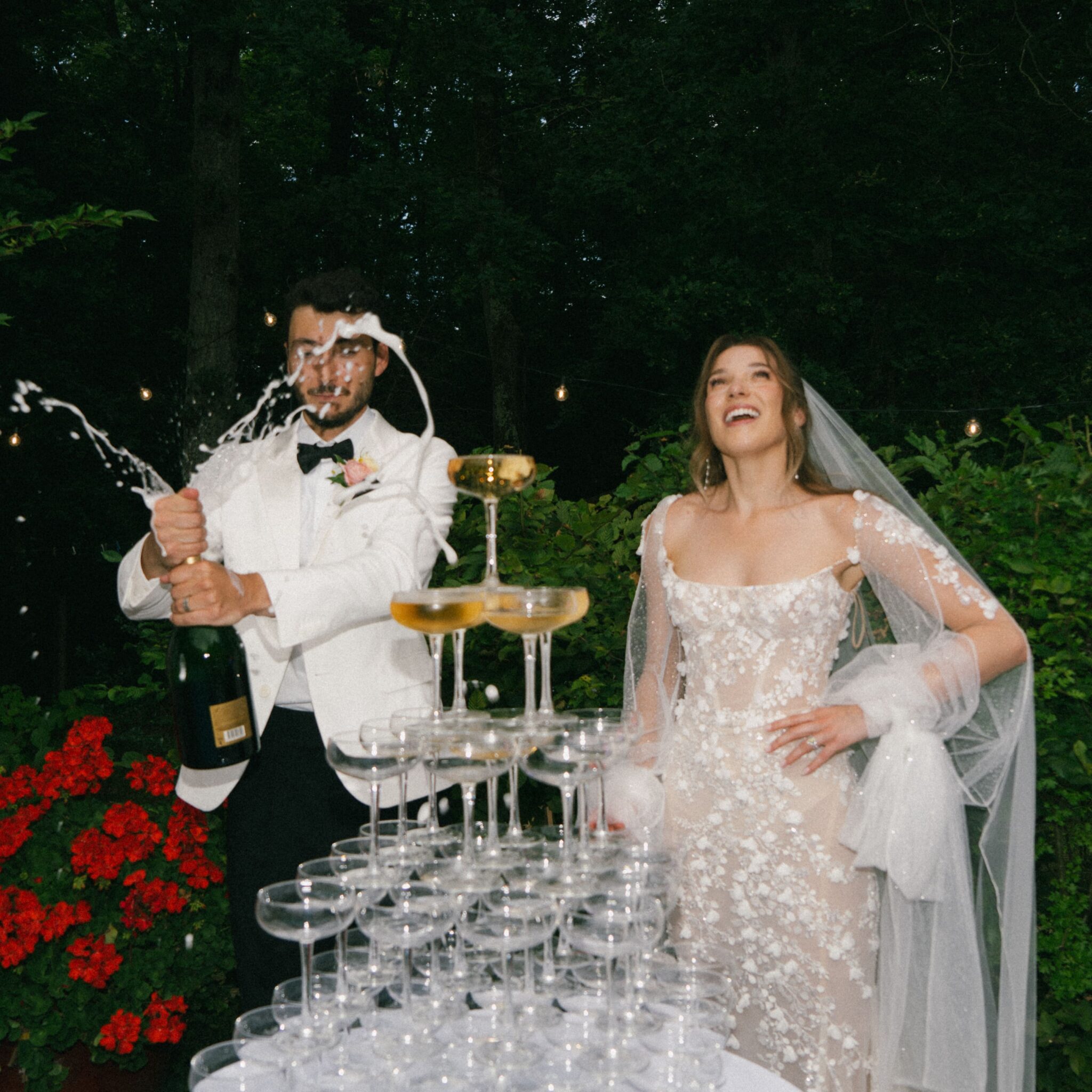 Victor et Katie souhaitaient se marier dans le jardin de la maison familiale : un sacré défi ! Il faut installer une tente pour les invités, une tente pour le traiteur, faire passer l’électricité et créer un espace cérémonie. Le cadre est enchanteur mais on retrousse nos manches pour que la logistique suive. Après plusieurs mois de travail, le résultat dépasse les attentes, les invités et les mariés profitent à fond de la soirée !